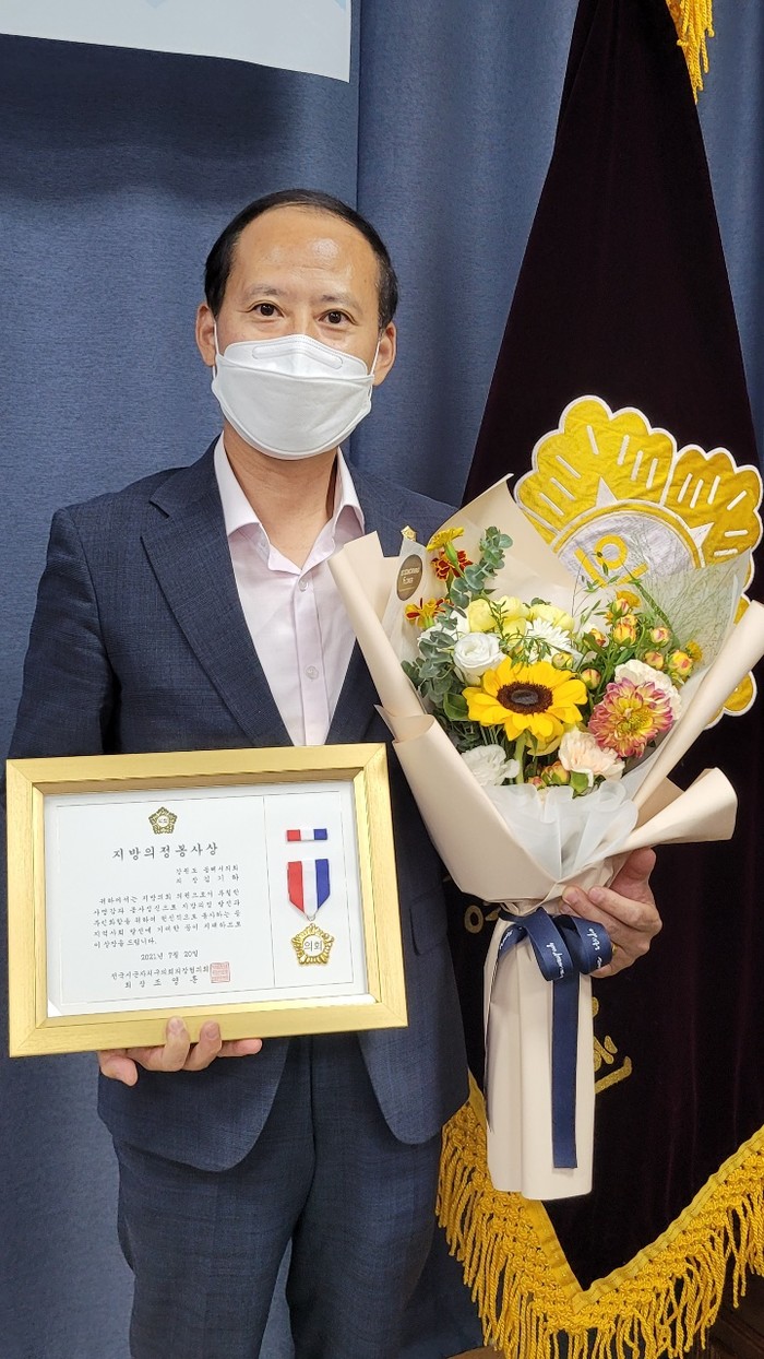 한편, 의정봉사상 시상식은 코로나19로 인해 20일 횡성군에서 개최된 제220차 강원도시군의회의장협의회 월례회에서 이정훈 강원도시군의회의장협의회장이 대신 전달했다.