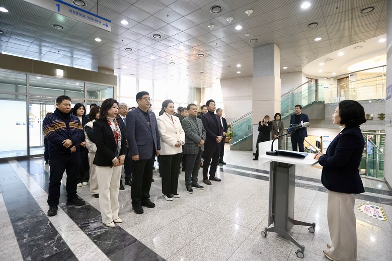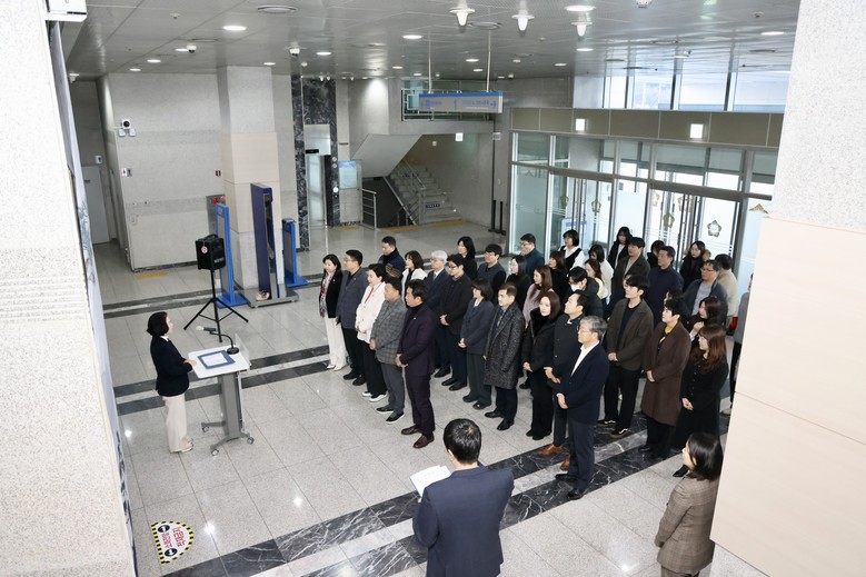 [천안시 세계타임즈=이현진 기자] 천안시의회(의장 김행금)는 1월 2일 오전 9시, 의회 1층 로비에서 2026년 시무식을 열고 새해 업무를 본격적으로 시작했다.
