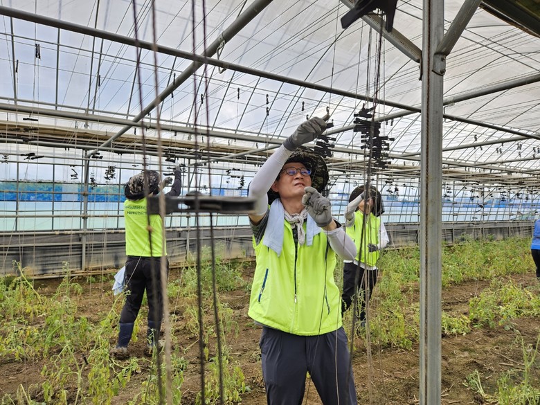 이날 농협은행 임직원들은 침수된 농지의 북구작업 및 2차 피해 예방을 위해 토사제거, 피해작물 운반, 지주대 제거, 비닐하우스 시설물 정비작업으로 구슬땀을 흘렸다.