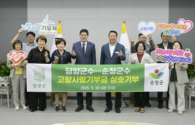 이날 최영일 군수는 담양군청을 방문해 고향사랑기부금을 전달했으며, 이에 화답해 정철원 담양군수도 순창군에 고향사랑기부금을 기탁해 두 지자체 간의 우의를 돈독히 했다.