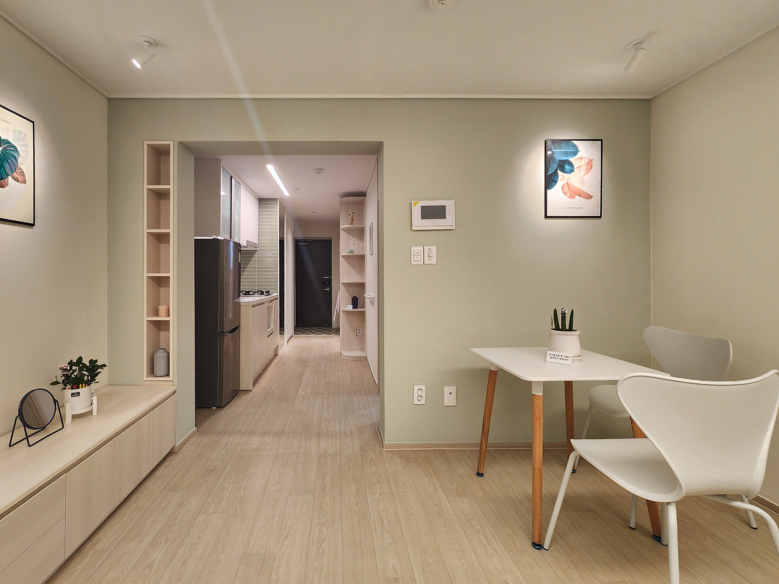 현관부터 안방까지 바닥 턱을 3cm 이내로 낮추고 경사로를 설치해 낙상 위험은 줄이고 이동의 편리성을 더한다. 현관과 화장실에는 안전 손잡이와 접이식 안전 의자를 설치하고, 복도에는 야간 센서등을 달아 고령자의 생활 안전성을 높인다.
