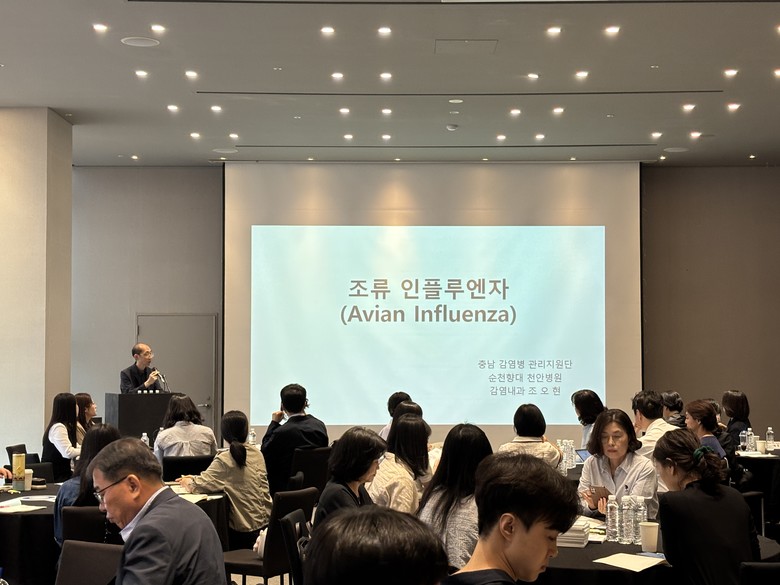 토론기반 훈련은 고병원성 조류인플루엔자 확진 농장 방역조치 등 상황을 포함해 조류인플루엔자 인체감염증 확진 사례 발생부터 감염 확산, 참가자가 위기 상황 분석·접촉자 통제·감시체계 운영방안을 논의했다.