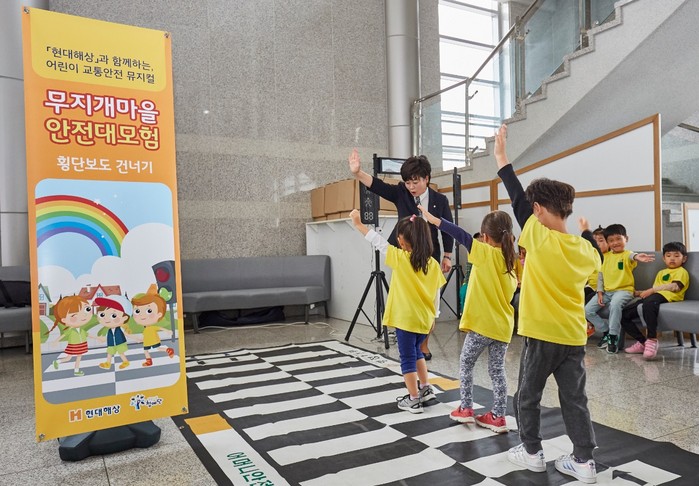 특히, 지난해 현대해상이 뮤지컬 메인 테마곡으로 제작한 교통안전송 ‘최고의 안전대장’을 올해에는 율동을 가미한 동영상으로 만들어 사전 배포해 공연 중에 어린이들이 노래와 안무를 쉽게 따라 할 수 있도록 했다.