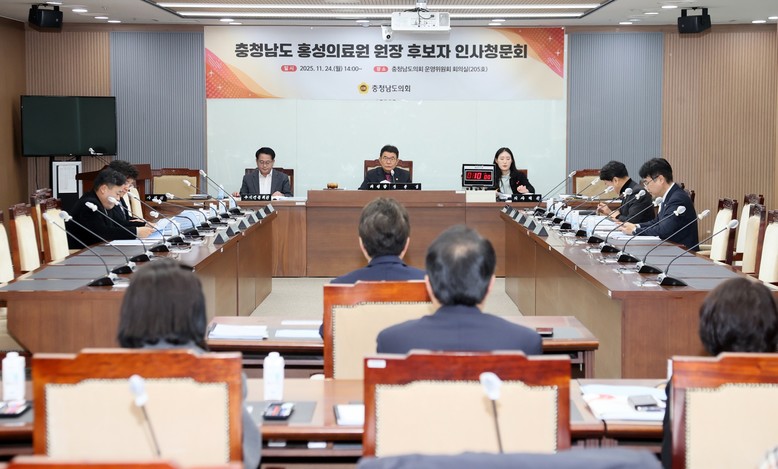 정광섭 위원장(태안2·국민의힘)은 “홍성의료원은 의료기관으로서 지역민들에게 수준 높은 의료서비스를 제공함과 동시에 공공기관으로서 사회적 가치를 다해야 하는 책임도 가지고 있다”며 “도의회도 홍성의료원이 공공의료원으로서의 역할을 제대로 수행할 수 있도록 최선을 다해 지원할 예정이니, 후보자도 의료원장으로 임명되면 홍성의료원이 지역주민에게 신뢰받고 의지할 수 있는 의료기관으로 자리매김할 수 있도록 사명감을 가지고 직무에 임해 달라”고 당부했다.