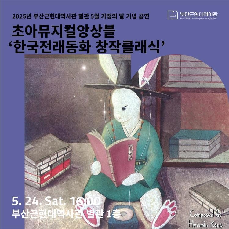 5월 넷째 주 토요일(24일) 오후 4시 별관 1층에서는 가정의 달을 맞아 어린이를 위한 한국 전래동화 모티브의 창작클래식 공연이 펼쳐진다.