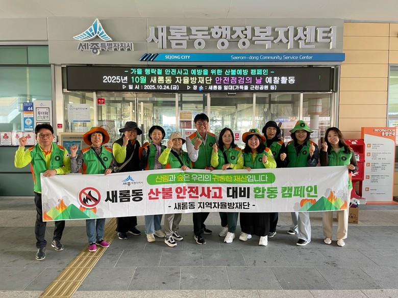 이날 새롬동자율방재단은 관내 산책로와 가득뜰 근린공원 일대를 순찰하면서 산불조심 현수막을 게시하고, 인화물질 취급 금지와 흡연 시 지정된 장소 이용 등 산불 예방 수칙을 홍보했다.