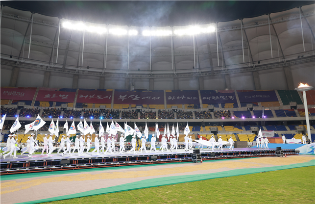 ◈ ▲박칼린 감독의 성대한 개폐회식 ▲1천 2백여 명의 주자가 연출한 성화봉송 ▲ 4천여 명의 자원봉사자 ▲1만 6천여 명의 서포터스 ▲2천여 명의 부산 선수단 등 대회의 수많은 주역들이 완성해 낸 결과 [세계타임즈=부산 이용우 기자] 대한민국을 뜨겁게 달구었던 7일 간의 「제106회 전국체육대회」가 어제(23일) 저녁 6시 부산아시아드주경기장에서 폐회식을 갖고 대단원의 막을 내렸다.