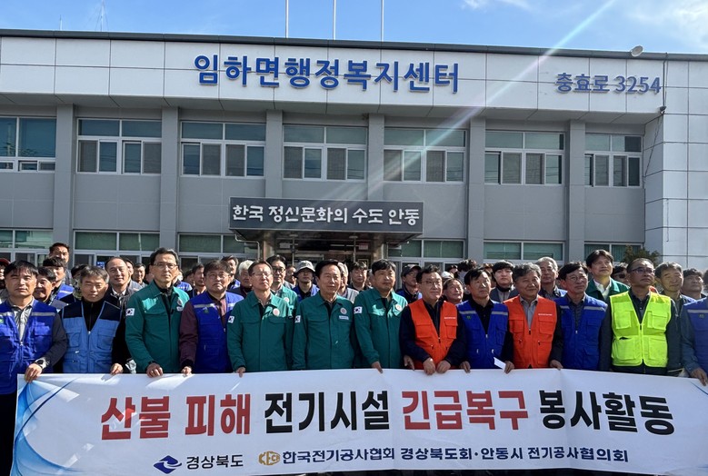 경북도는 23일, 산불 피해지역인 안동시 임하면을 찾아 한국전기공사협회 경북도회와 함께‘산불피해 주택 전기 시설 복구 봉사활동’을 추진했다.