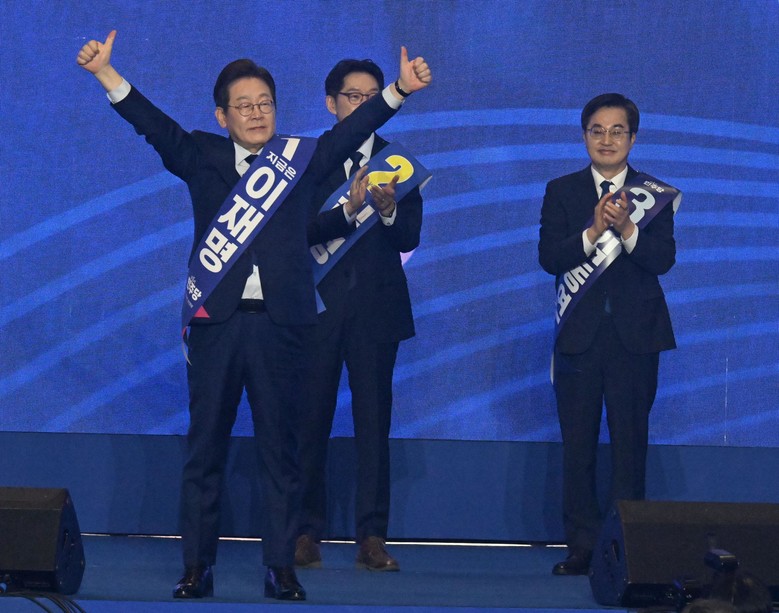 [고양 세계타임즈 = 심귀영 기자] 더불어민주당 이재명 대선 경선 후보가 27일 경기 고양시 킨텍스에서 열린 '제21대 대통령선거 후보자 선출을 위한 수도권·강원·제주 경선 및 최종 후보자 선출 대회'에서 포즈를 취하고 있다. 2025.4.27 [공동취재]