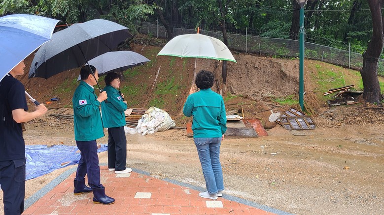 최근 집중호우로 인해 인근 야산에서 토사가 무너져 내린 효성동 아파트 현장과 작전서운동 토끼굴, 계산동 주택가 토사유입 등의 현장을 방문해 피해상황을 점검했다.