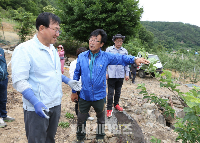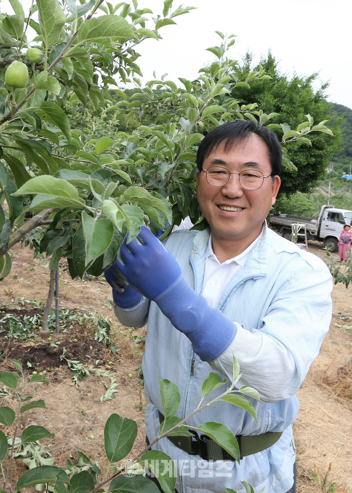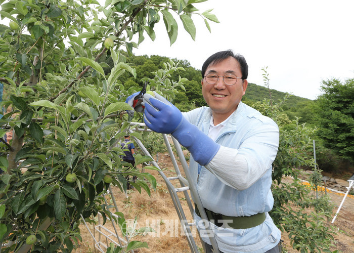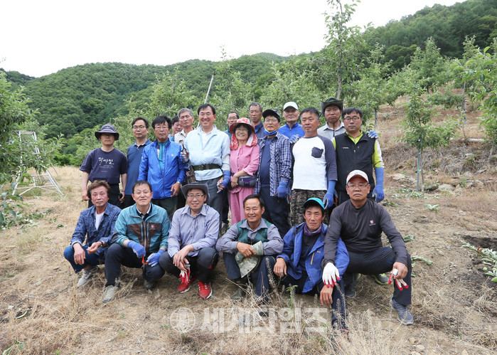 나 군수는 연풍에 사는 박씨의 친구 10여명이 사과 농사를 돕고 있지만 일손이 부족해 사과 적과가 늦어지고 있는 것을 안타까워한다는 이야기를 듣고 6일 오후 박씨의 농가를 방문한 것이다.