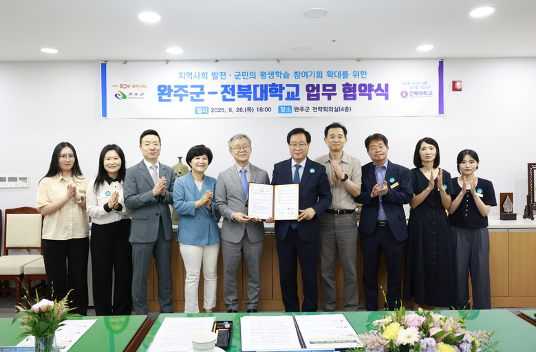 이번 협약은 완주군과 전북대학교가 손잡고 정통 인문학의 깊이와 디지털 기술의 확장성을 결합해, 지역에 새로운 배움과 소통의 문화를 정착시킨다는 데 의의가 있다.