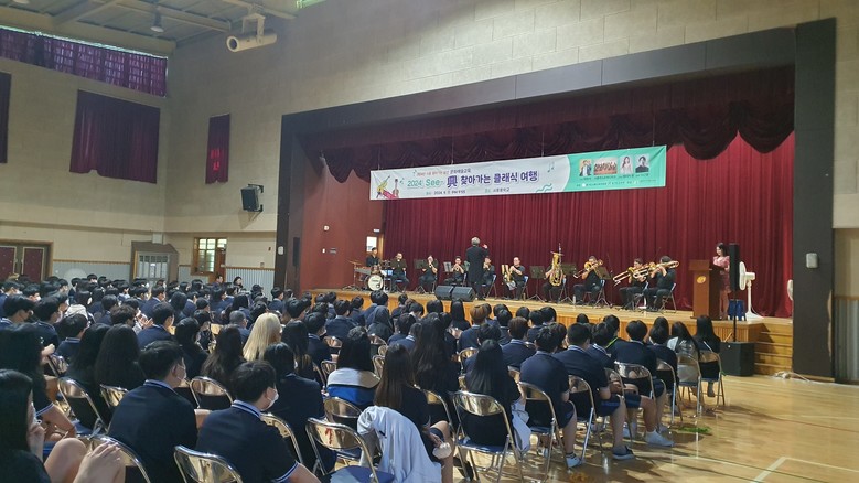 이번 클래식 여행은 시흥중학교 1학년 학생들과 시흥윈드오케스트라와 함께했다. 성악, 관학기, 타악기가 어우러진 아름다운 음악은 7월 25일부터 2학기를 시작며 더위와 싸워 지친 학생들에게 큰 위로가 되었다.