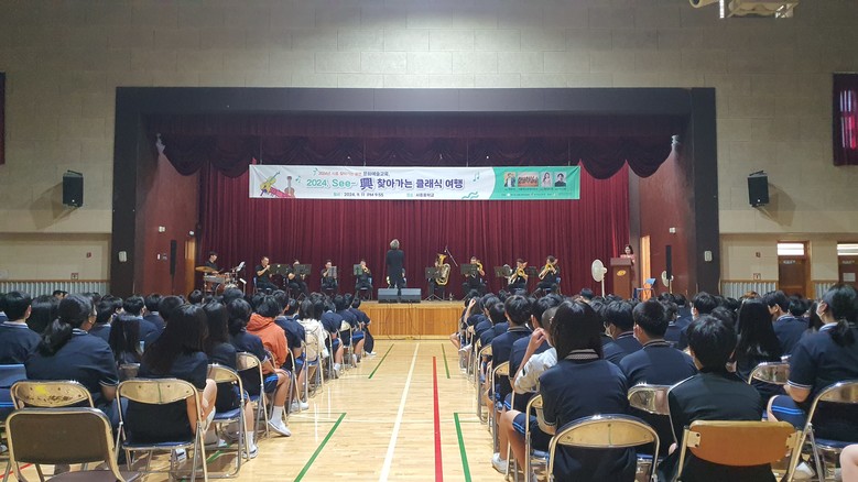 [시흥시 세계타임즈=송민수 기자] 경기 시흥시 시흥중학교(교장 조원택)는 11일 학교 온누리관에서 시흥윈드오케스트라와 함께하는 2024년 시흥 찾아가는 공연 문화예술교육‘See-興 찾아가는 클래식 여행’을 개최하였다.