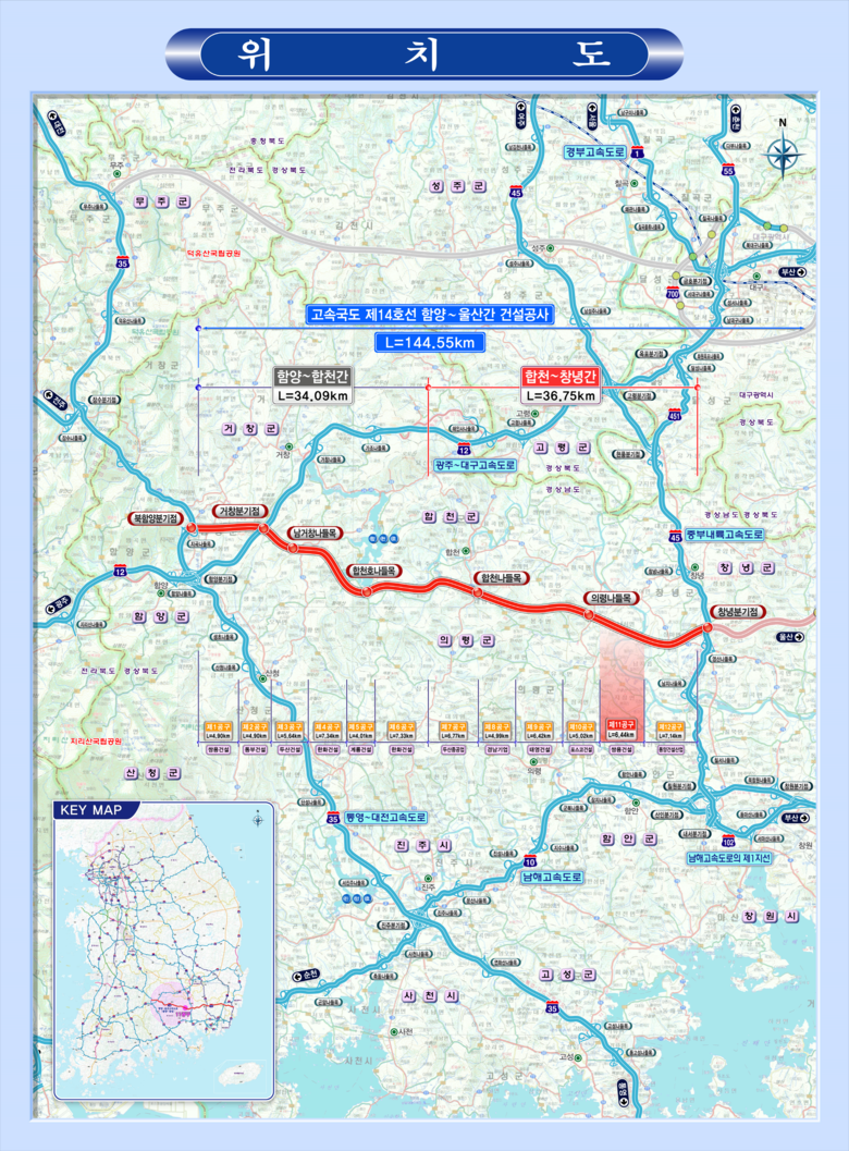 | ▲ 고속국도 제14호선 함양~울산 간 건설공사 위치도 |