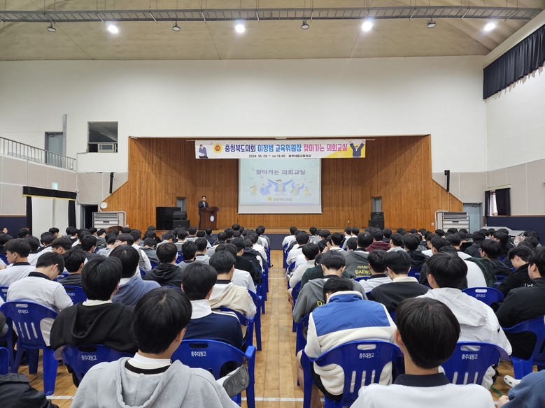 [충북 세계타임즈=이현진 기자] 충북도의회(의장 이양섭)는 29일 대원고등학교(충주 소재) 학생들을 대상으로 ‘찾아가는 의회교실’을 운영했다.