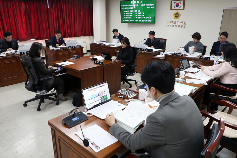 [충북 세계타임즈=이현진 기자] 충북도의회 정책복지위원회(위원장 이상정)는 25일 제414회 임시회 제2차 회의를 열어 위원회 6개 소관부서(보건복지국, 충북연구원, 청주의료원, 충주의료원, 충북학사, 충청북도사회서비스원)에 대한 2024년도 주요 업무계획을 보고 받았다.