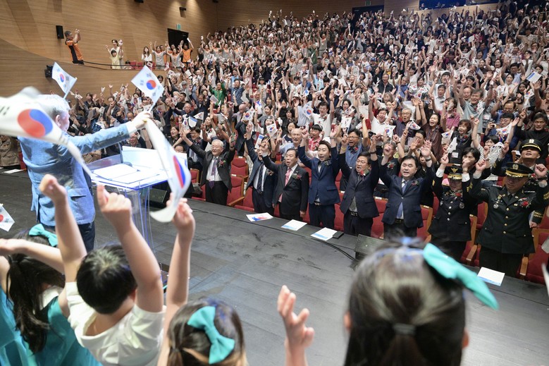 또 독립유공자 유족 대표 강용수 옹의 선창으로 1,200여 명의 참석자들이 태극기를 흔들며 큰 함성으로 만세를 삼창하며 광복절 그날의 함성을 재연했다.