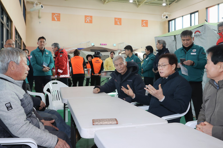 이 자리에서 박 지사는 마을 이장단과 간담회를 갖고 주민 대피 과정에서의 어려움과 대피소 생활의 불편 사항을 직접 청취했다. 박 지사는 이장단으로부터 마을 상황을 전해 들은 뒤, 구호 물품 지급 현황을 확인하며 대피 중인 주민들이 생활하는 데 불편함이 없도록 세밀하게 살폈다.