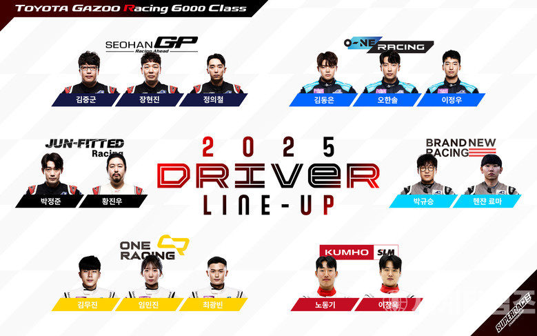 [세계타임즈=방춘재 기자] 슈퍼레이스가 2025시즌 토요타 가주 레이싱 6000 클래스 팀별 최종 라인업을 발표했다.