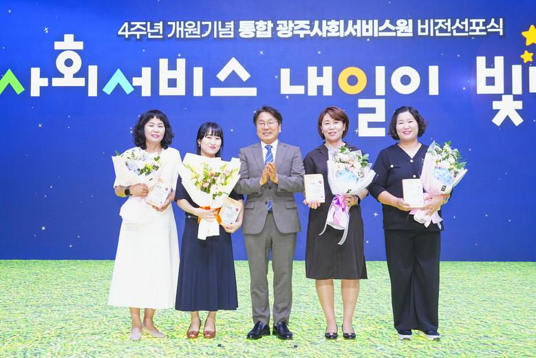 - 강기정 시장 “도전‧혁신으로 공공돌봄‧복지 서비스 성숙” [세계타임즈=광주 손권일 기자] 광주광역시(시장 강기정)와 광주사회서비스원(원장 김대삼)은 12일 광주실감콘텐츠큐브에서 광주사회서비스원 개원 4주년을 맞아 ‘시민의 복지를 선도하고, 기회를 제공하는 사회서비스 전문기관’ 비전 선포식을 열었다.
