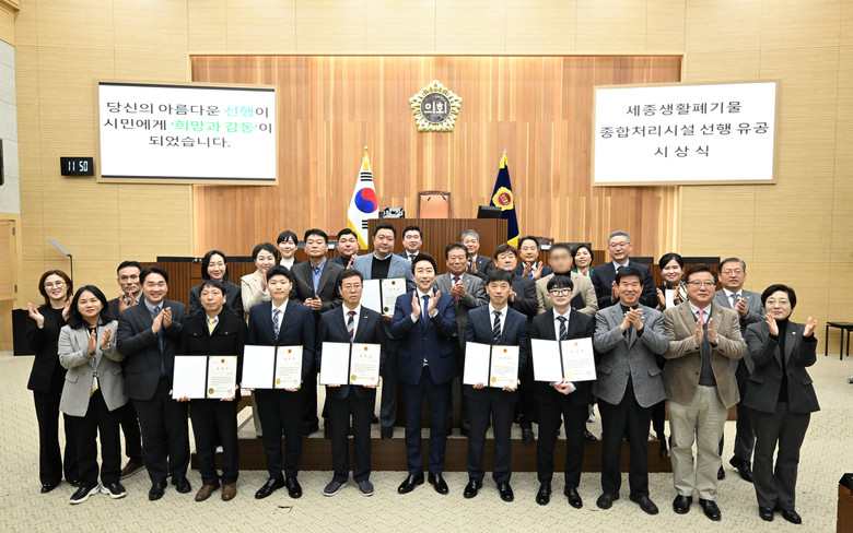 임채성 의장은 “담당 공무원의 신속한 대응과 생활폐기물종합처리시설 직원들의 아름다운 선행이 시민들에게 희망과 감동을 주었다”라며, “이번 세종시의회 포상이 지역사회가 더욱 화합하고 따뜻한 공동체로 발전하는 선한 영향력이 되길 바란다”라고 말했다.