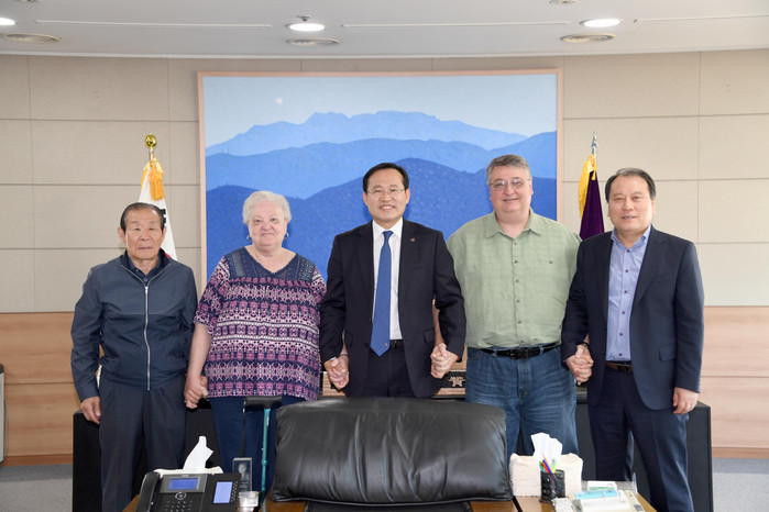 [광주=세계타임즈 손권일 기자] 김동찬 광주시의회 의장은 7일 5.18의 진실을 해외에 알리기 위해 노력했던 고(故) 아놀드 피터슨(한국명: 배태선) 목사의 부인 바바라 피터슨 여사(74세)와 장남 더그 피터슨(53세)등 가족 일행을 접견하고 감사의 마음을 전했다.