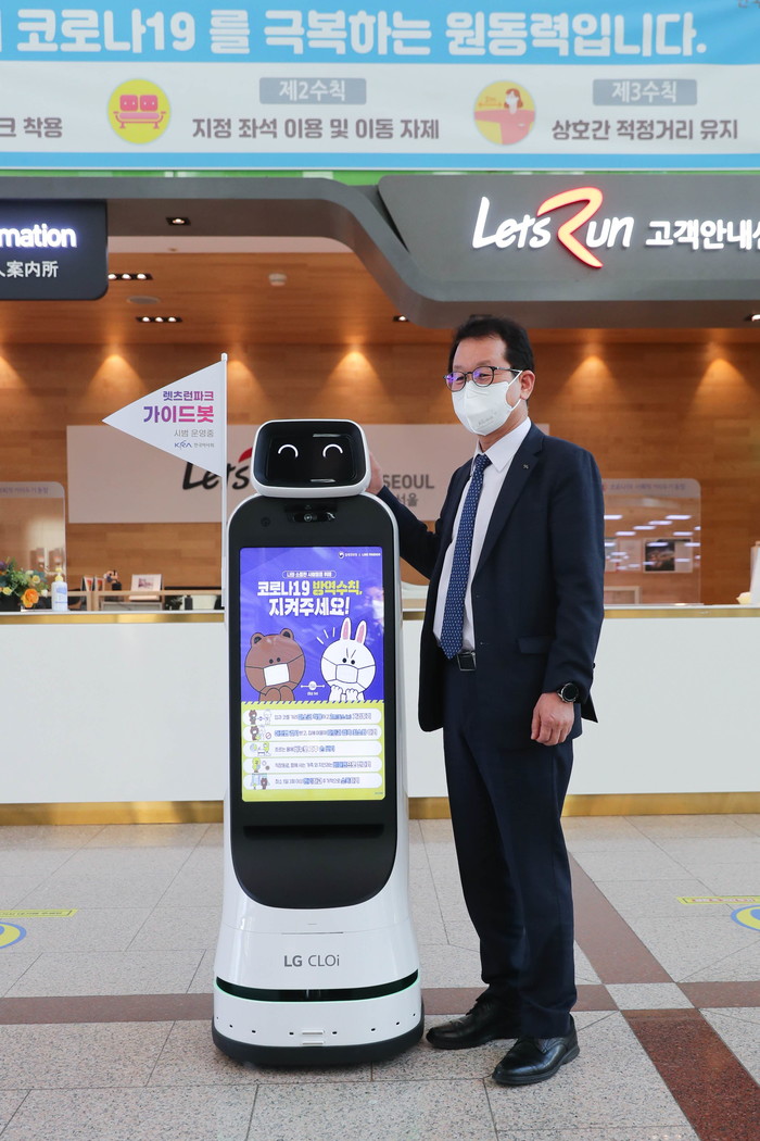 한국마사회는 안내로봇의 안정적인 도입과 운영을 위해 LG전자와 협업을 추진, ‘LG 클로이 가이드봇’ 운영을 확정하고 서울 경마공원 개장에 맞춰 시범 운영에 돌입한다. LG 클로이 가이드봇은 최첨단 사물인식 기술로 자율 주행과 충전이 자동으로 이뤄지며 음성을 통한 질의응답과 대화가 가능해, 고객들에게 방역지침 준수 요청과 길 안내 등 고객 응대 측면에서 활용성이 높을 것으로 보인다. 무엇보다 로봇이 현장에 투입되기 때문에 비대면·언택트 서비스로 대면 접촉을 최소화할 수 있고, 별도의 휴식시간 없이도 방역활동이 가능해 안전한 방역 환경 조성에 크게 기여할 것으로 전망된다.