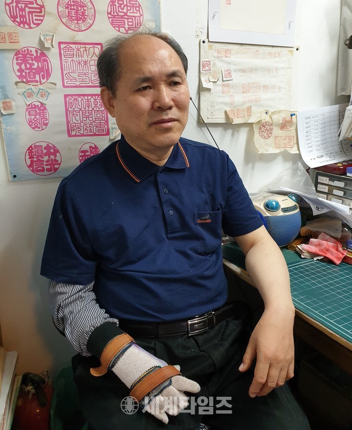 인장은 실용인장과 예술인장으로 구분된다. 실용인장은 구비서류등에 쓰이는 일상의 도장이고 예술인장은 그림이나 글씨에 낙관(落款)으로 사용되는 전각이다. 인사동 골목에서 1평 남짓한 가게에서 그는 지금 이순간에도 고객이 맡긴 도장을 정성스레 파고 있다. 솜씨도 일품이다. 그래서 인지 단골손님중엔 이름만대도 알 수 있는 사람이 많다. 특히 인사동에서 미술작가들의 낙관주문이 많기도 하다고 한다. 또한 외국인 단골 손님들도 상당수있다.