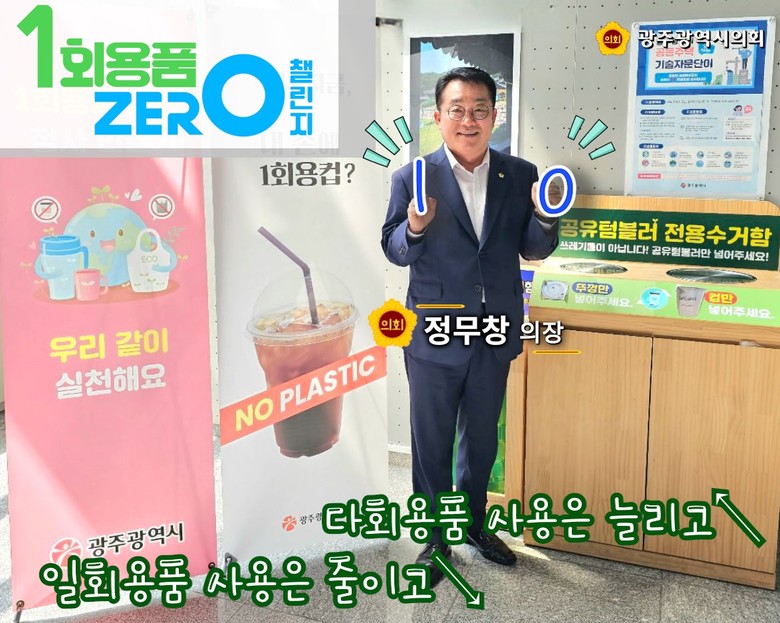 [광주 세계타임즈=손권일 기자] 광주광역시의회(의장 정무창)는 환경부에서 주관하는 ‘일회용품 제로 챌린지’에 동참했다고 24일 밝혔다.