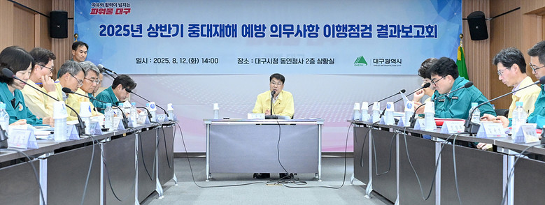 이번 보고회는 김정기 대구시장 권한대행 주재로 18개 실·국장 등 20여 명이 참석한 가운데, 중대재해 예방을 위한 의무사항 이행 현황을 점검하고 향후 개선 방안을 논의하기 위해 마련됐다.