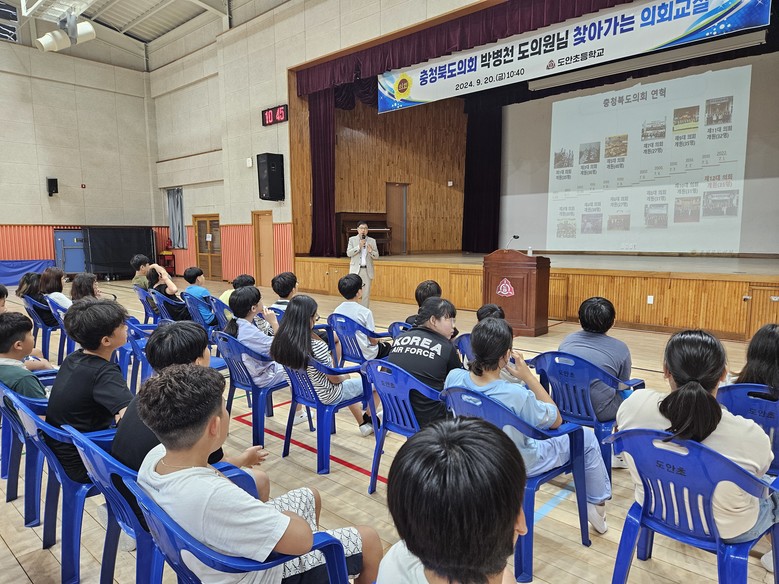 [충북 세계타임즈=이현진 기자] 충북도의회(의장 이양섭)는 20일 증평 도안초등학교 학생들을 대상으로 ‘찾아가는 의회교실’을 운영했다.