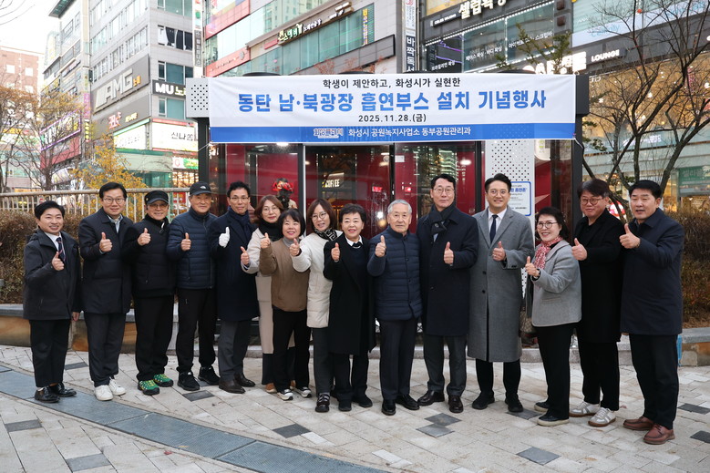시는 28일 동탄 남광장에서 ‘동탄 남·북광장 흡연부스 설치 기념행사’를 개최했다. 동탄 남·북광장은 법정 금연구역은 아니지만 유동인구가 많아 흡연행위로 인한 비흡연자의 간접피해와 인근 상가의 불편이 지속되어 왔다.
