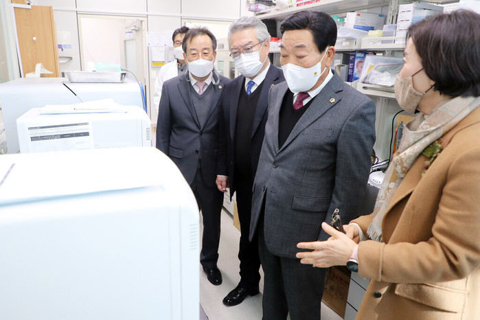 이날 박문희 의장은 보건환경연구원을 찾아 코로나19 바이러스 감염의심환자의 검사를 맡고있는 직원들의 노고를 위로하고, 현장 애로사항을 청취했다.