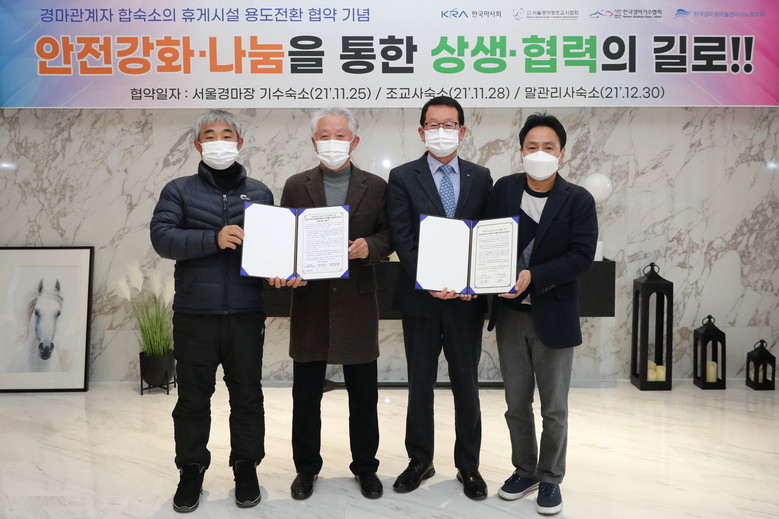 또한 한국마사회는 서울경마공원 말관계자 복지관 이외에도 부산경남경마공원, 제주경마공원 등에도 경주마 관계자 합숙소 용도전환 사업을 추진하며 말관계자들의 복지와 업무 환경 증진을 위해 다각적 노력을 기울이고 있다.