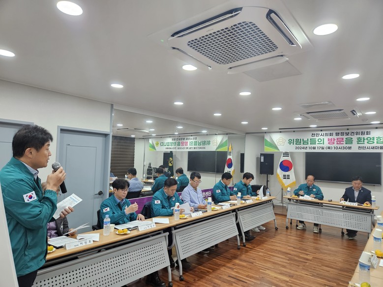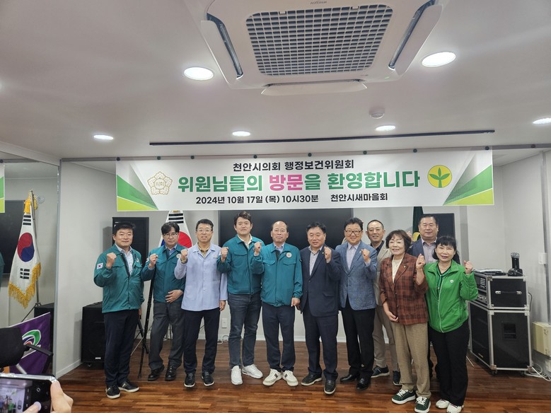 - 육종영위원장, 김강진부위원장, 정도희의원, 이종담의원, 이상구의원, 조은석의원 - [천안시 세계타임즈=백택기 기자] 2024년 10월 17일, 천안시의회 행정보건위원회(위원장 육종영)는 현장방문 2일차를 맞아 천안시 새마을회 등 4곳을 방문했다.
