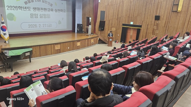 한편, 대구시교육청은 2월 27일(금) 오후 2시, 대구창의융합교육원 시청각실에서 실천학교 운영 방향 및 지난해 초.중등 우수 운영 사례 등을 안내하고 학교와 사회 환경교육기관 간 협력 이음 시간을 가져 환경 프로그램을 공유하는 등 각 학교별 환경교육 담당 교원 180여 명을 대상으로 ‘2026학년도 생태전환교육 실천학교 운영 설명회’를 개최했다.
