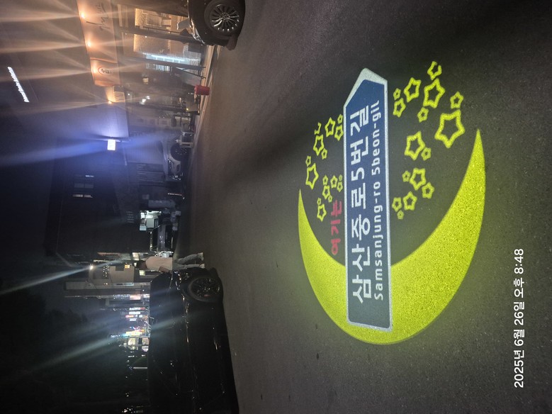 이곳에는 엘이디(LED) 도로명판, 엘이디(LED) 기초번호판, 야광형 건물번호판, 도로명 홍보조명(로고젝터), 무비라이트 등 5종의 주소정보시설이 전국 최초로 통합 설치됐다.