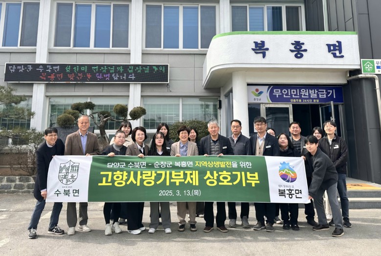 한정안 복흥면장은“이번 기부를 통해 고향사랑 기부제 활성화에 기여하길 바란다”면서“앞으로도 수북면과 협력하며 지속적인 상생발전을 이뤄 나가겠다”고 말했다.