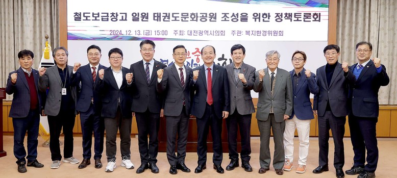 복지환경위원회 박종선 의원(국민의힘, 유성구1)이 좌장을 맡은 이번 토론회에서 대전역 인근 철도보급창고(국가등록문화유산 제168호) 일원을 태권도문화공원으로 조성하기 위한 제도적·정책적 방안이 제기돼 관심을 모았다.