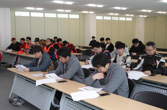 [사진설명]태백 스피드웨이에서 7일 진행된 2019 슈퍼챌린지 공식연습에 참가한 선수들이 경기 운영에 대한 설명을 듣고 있다.