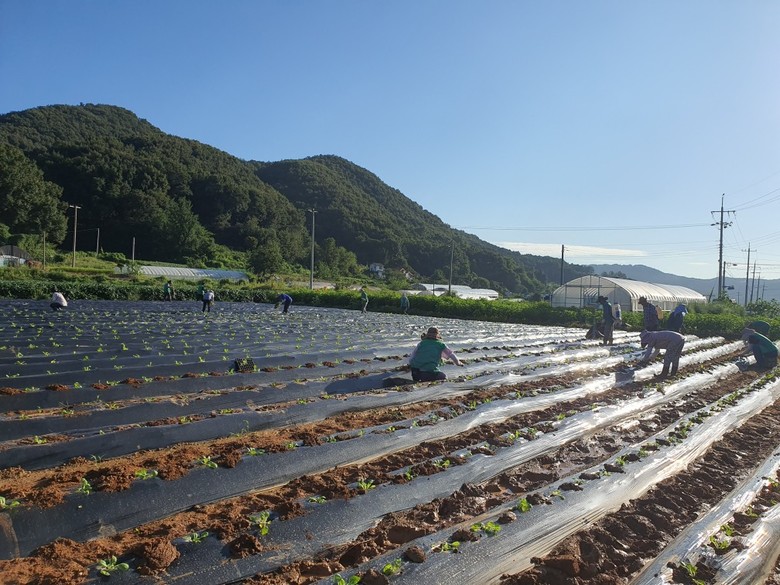 이날 행사에는 전동면새마을회 회원 30여 명이 참여해 배추 2,500여 포기를 심었다.