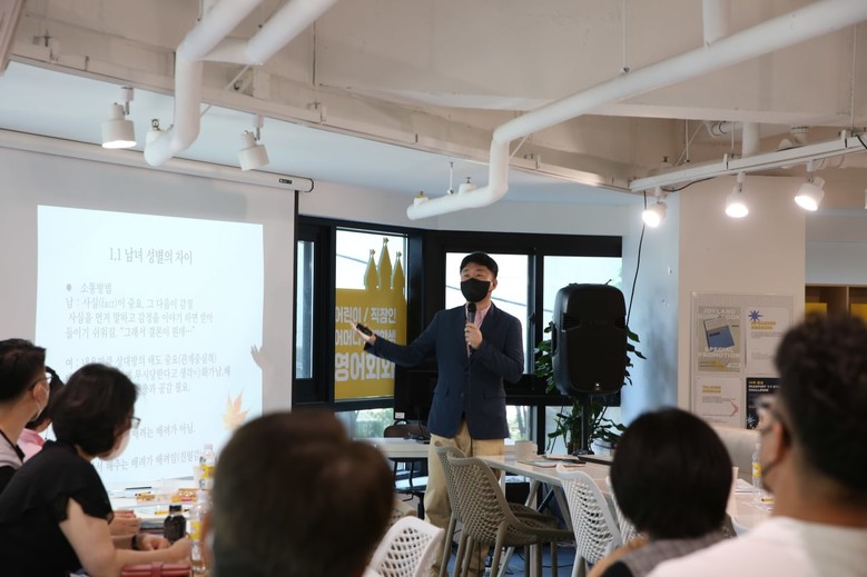 | ▲ 부부심리치료사 이성규 강사가 참가자들과 프로그램을 진행하고있다 |