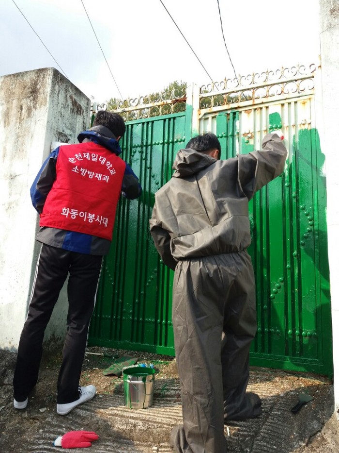 사회봉사단은 비월과 신기마을의 어려운 가정을 방문해 학과에서 배운 재능으로 화재경보기를 설치하고 전등 및 가스시설을 교체했고, 비월경로당에서는 피부 맛사지, 테이핑 안마, 네일아트, 검진 등의 봉사활동을 실시했다.