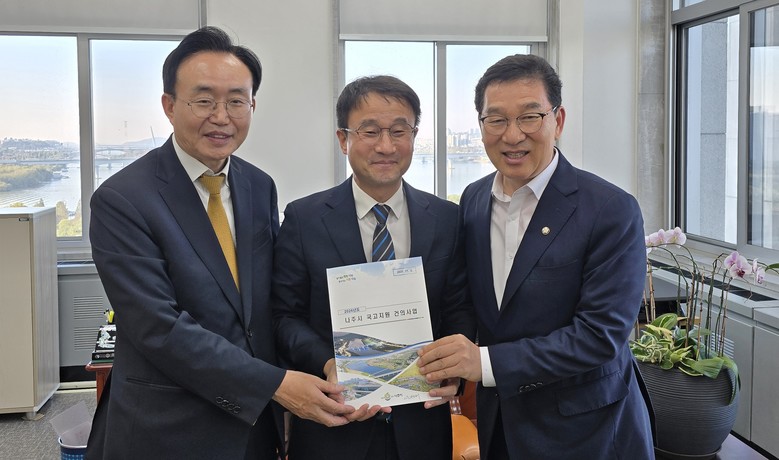 | ▲ 윤병태 나주시장(왼쪽)과 신정훈 국회의원(오른쪽)이 한병도 국회 예산결산특별위원장(가운데)을 만나 지역 현안을 설명하고 국회의 협조를 요청했다 |