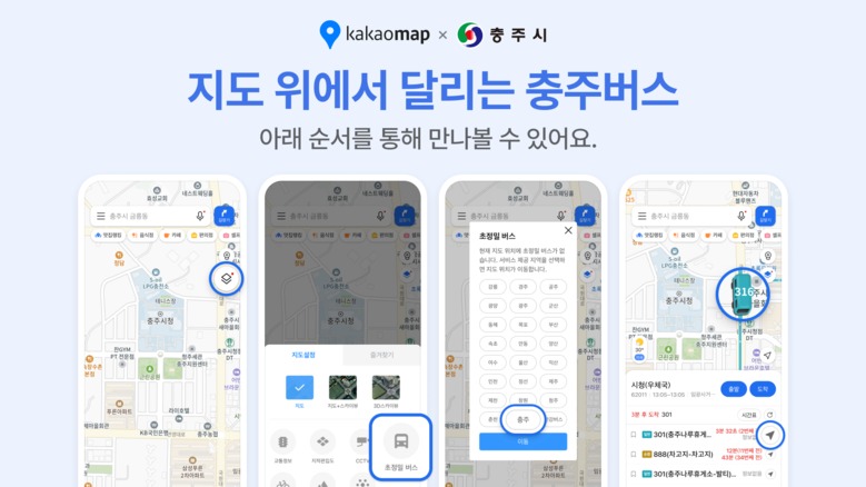 시는 지난달부터 충주시 버스정보 홈페이지를 통해 실시간 버스 위치와 도착 예정 정보를 제공해 왔으나, 카카오맵과 연계한 서비스를 도입하면서 시민들이 더 익숙한 플랫폼에서도 동일한 정보를 편리하게 확인할 수 있게 됐다.