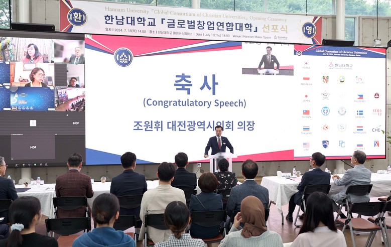 조원휘 의장은 축사를 통해 “7개국 대학 간 협력체제 구축으로 창업 인재 양성과 대학주도형 창업 생태계 조성이 촉진될 것으로 기대한다”며, “한남대 글로벌 창업 연합대학이 창업 교육을 선도하는 혁신 모델이 될 수 있도록 대전시의회에서도 필요한 지원을 아끼지 않겠다”고 말했다.