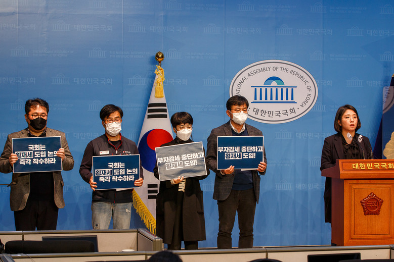 나원준 교수는 “3분기까지 은행과 정유사들은 막대한 이익을 실현했지만, 가계실질소득은 줄었고 빈곤가구의 처지는 내리막”이라며 “양극화의 현실을 두고 볼 수 없다. 횡재세 연내 입법을 정치권에서 꼭 이뤄달라”고 당부했다. 한성규 민주노총 부위원장은 “거대 양당의 반대로 양극화 해결을 위한 횡재세 과세가 불발되었다”며 “거대 양당의 반민중적 행태를 규탄한다”고 밝혔다. 한 부위워장은 “양당은 재벌 대기업의 이익에 침묵하지 말고, 정기국회 내에 횡재세를 반드시 입법하라”고 촉구했다.