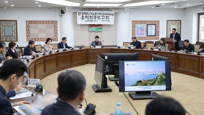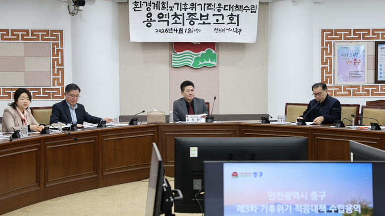 인천시 중구(구청장 김정헌)는 지난 1일 중구청 서별관 회의실에서 ‘인천 중구 환경계획 및 기후위기 적응대책 수립 용역 최종 보고회’를 개최했다고 밝혔다.