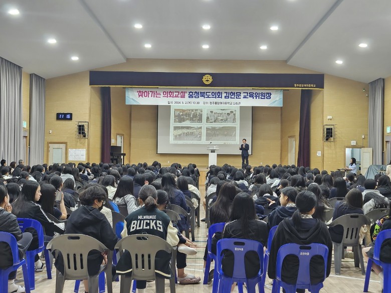 [충북 세계타임즈=이현진 기자] 충북도의회(의장 황영호)는 2일 청주중앙여자중학교 2~3학년 학생을 대상으로 ‘찾아가는 의회교실’을 운영했다.